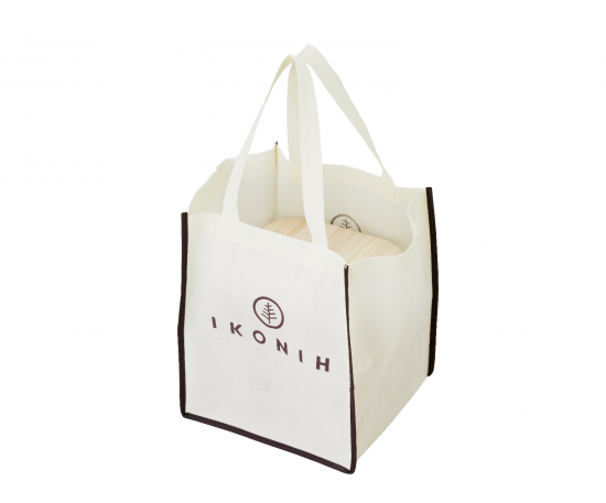 環境問題や森林について学べる「森と地球のおはなし」A5冊子と完成品のスツールを入れて持ち運べるエコバック付き。